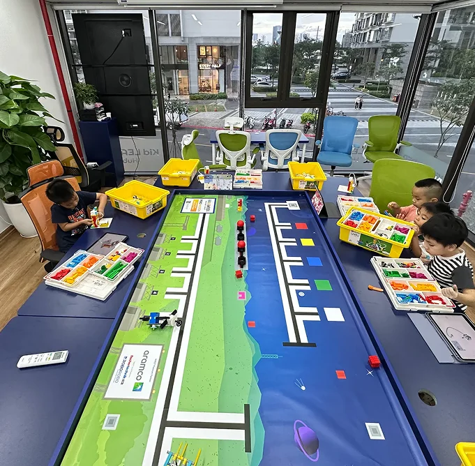 Không gian học tập tiên tiến kết hợp thiết bị và dụng cụ học tập chuyên biệt cho từng bé, hỗ trợ tối đa việc học tập, thực hành và phát triển tư duy công nghệ.