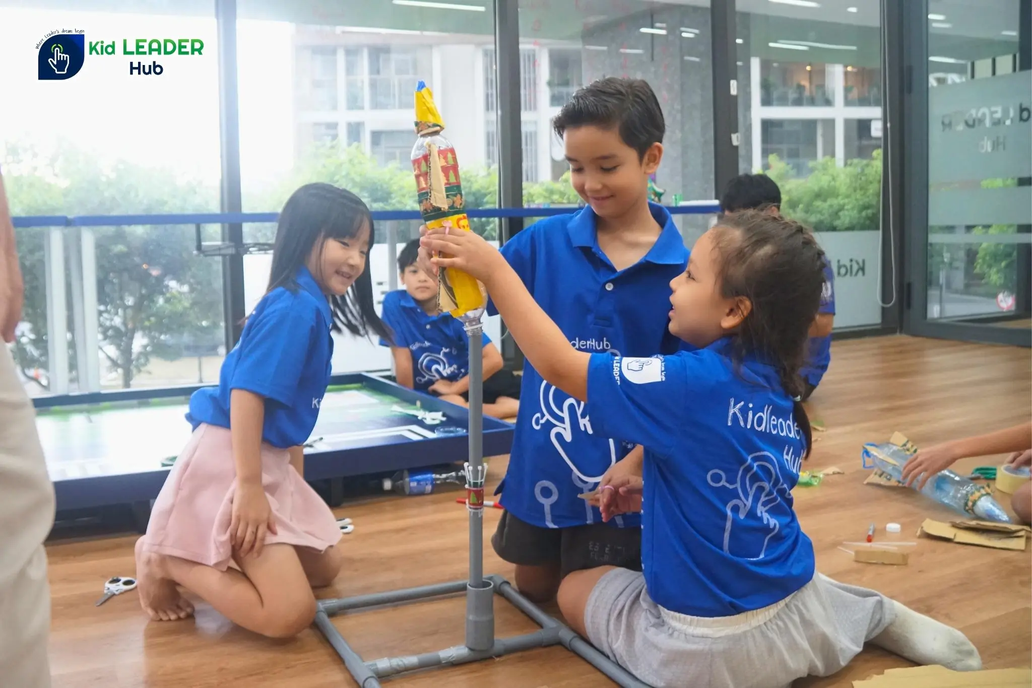 Các em được chế tạo tên lửa nước trong môn Science tại Summer Camp 2025 của Kid Leader Hub