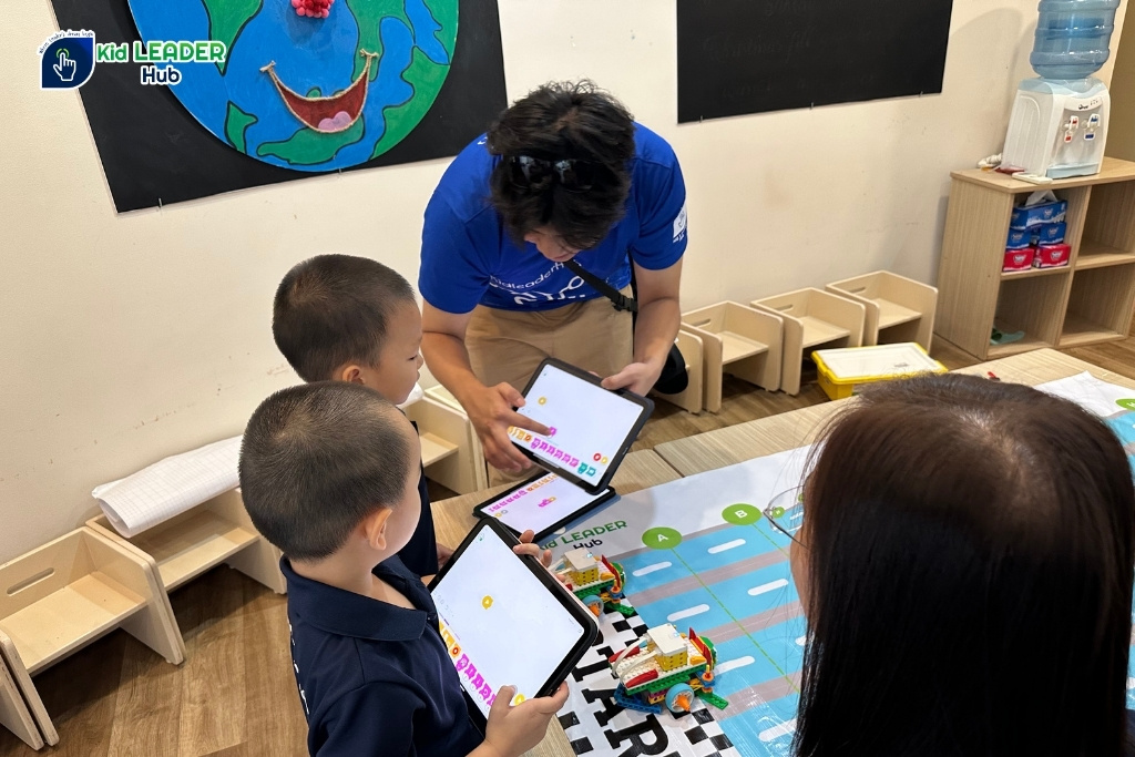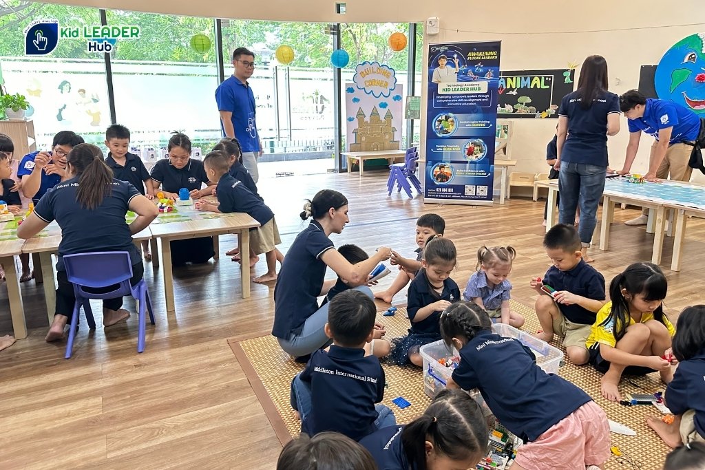 Các bé học sinh Mini Minds khám phá thế giới xung quanh và trải nghiệm công nghệ một cách tự nhiên tại khu vực Kid Frist của Kid Leader Hub